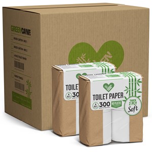 Our sustainably produced quality two-ply toilet paper in retail-style plastic-free packaging. Don’t be fooled by the transparent panel – it’s a compostable plant-based cellophane!
